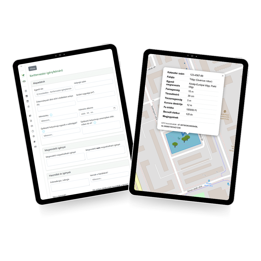 Az Arborist Note egyetlen rendszerbe rendezi a teljes kerttervezési felmérési és adminisztrációs folyamatot.